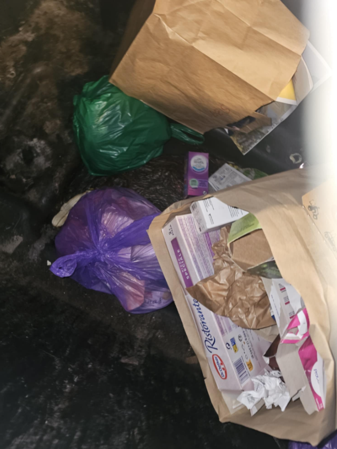 Jeg har fulgt med på avfallsdunkene den siste tiden, jeg tror mange har blitt flinkere å sortere søppel, men jeg ser likevel stadig søppel som enkelt kunne ha vært sortert. Styret har som tidligere sagt redusert henting av avfall som sparer oss for betydelige beløp. Men dette forutsetter at alle er med og sorterer avfallet. Bildet under viser to poser som ble kastet lørdag som viser perfekt sortert papiravfall som skulle vært kastet i papiravfall men som ble kastet i feil avfallsdunk :)